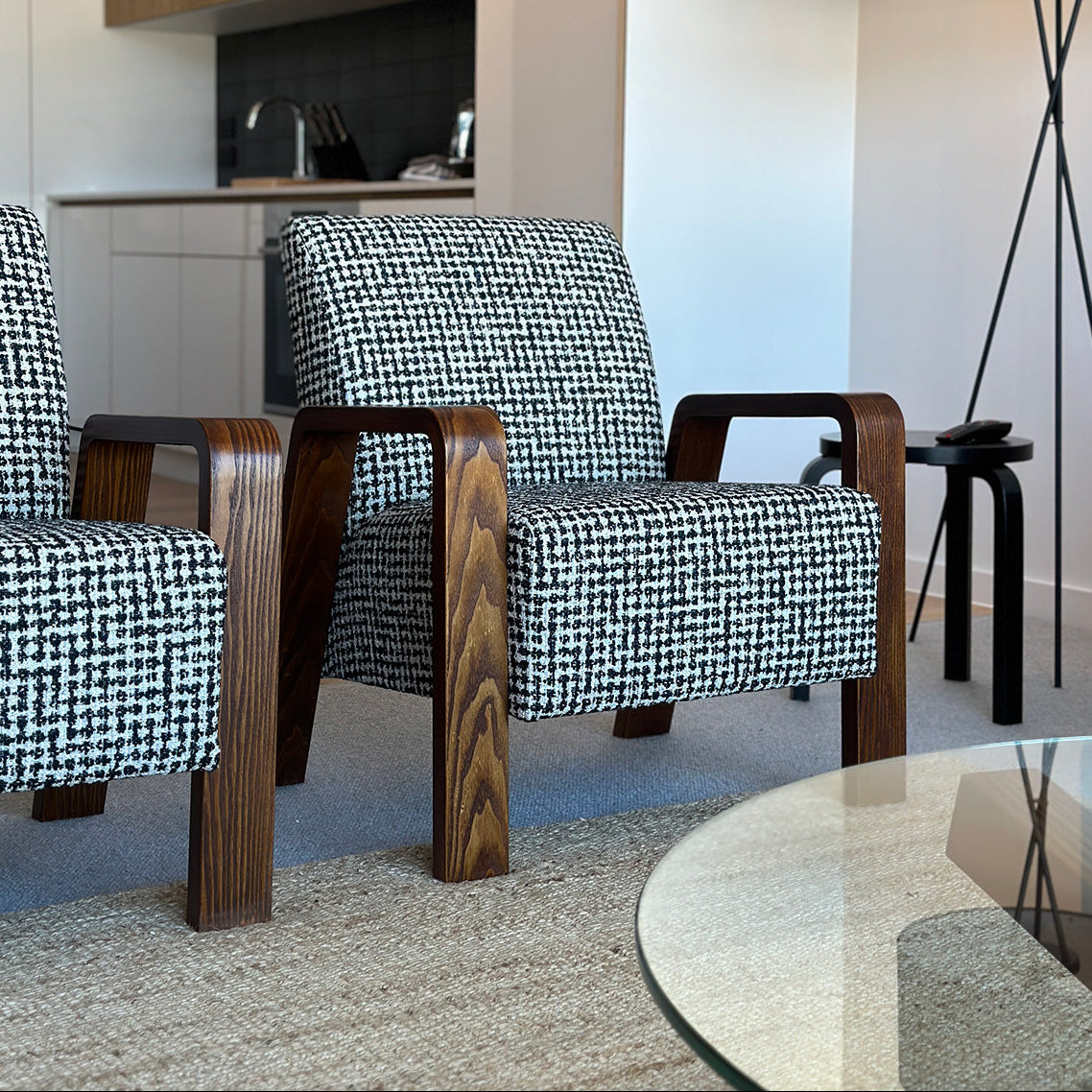 The Bach chair has a strong presence with it's curved timber arms, yet casual in overall appearance making it an ideal design for a modern interior. Equally a great chair for home with it's open style lounge and timber & textile options.